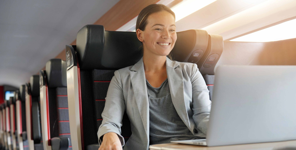 Mache Reisezeit zu Deiner Zeit und nutze die An- und Abreise zum Arbeiten, Entspannen oder Genießen – mit 100 % Ökostrom im Fernverkehr.